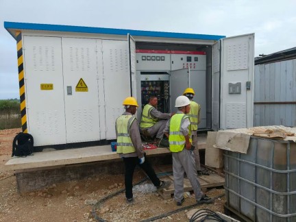 產(chǎn)品賣到哪里,服務(wù)就延伸到哪里。 公司技術(shù)人員在安哥拉項目現(xiàn)場指導(dǎo)調(diào)試我公司制造的箱式變電站。 24-05-11/LD-C-235 合同貨物 2臺630KVA 2臺1000KVA www.bolleyer.cn