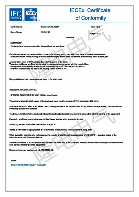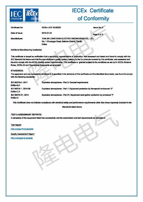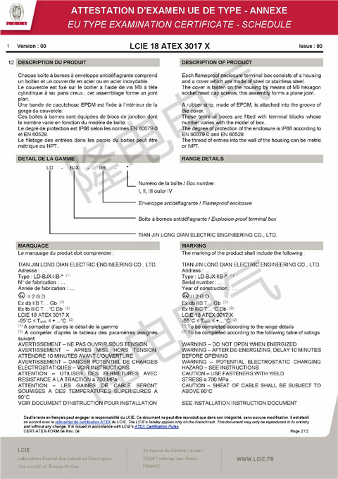 近期,我公司產(chǎn)品隔爆型接線箱(JB d、c),通過歐盟ATEX認證和國際電工委員會IEC認證。通過這兩項認證,標志著隆電電氣的產(chǎn)品制造水平符合世界一流標準,防爆電器的安全性能和功能有可靠保證??蓮V泛應用于歐洲及世界各國的石油、化工、冶金、水處理、建筑等項目中。