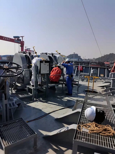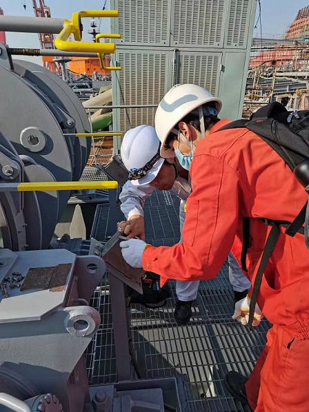 質(zhì)保部張建國(guó)部長(zhǎng),生產(chǎn)部王博副經(jīng)理在廣船國(guó)際公司進(jìn)行售后服務(wù)。