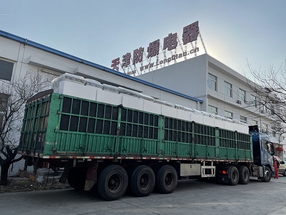 LD-C-513合同~為中國天辰工程公司黑龍江海倫生物酒精項目制造的117臺“MNS抽出式開關柜”第二批,53臺,完成檢驗,裝車發(fā)往黑龍江