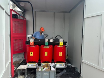 25-06-01/LD-C-272合同貨物~隆電電氣公司為中海油天津場地建造的大型箱式變電站已完成設(shè)計、生產(chǎn)、制造、檢驗。該設(shè)備尺寸為L*W*H=7000×3500×2820mm,由1臺SCB18-1600KVA變壓器和1臺SCB18-1250KVA變壓器及配套低壓柜構(gòu)成。今天完成最終測試,發(fā)往中海油天津現(xiàn)場。